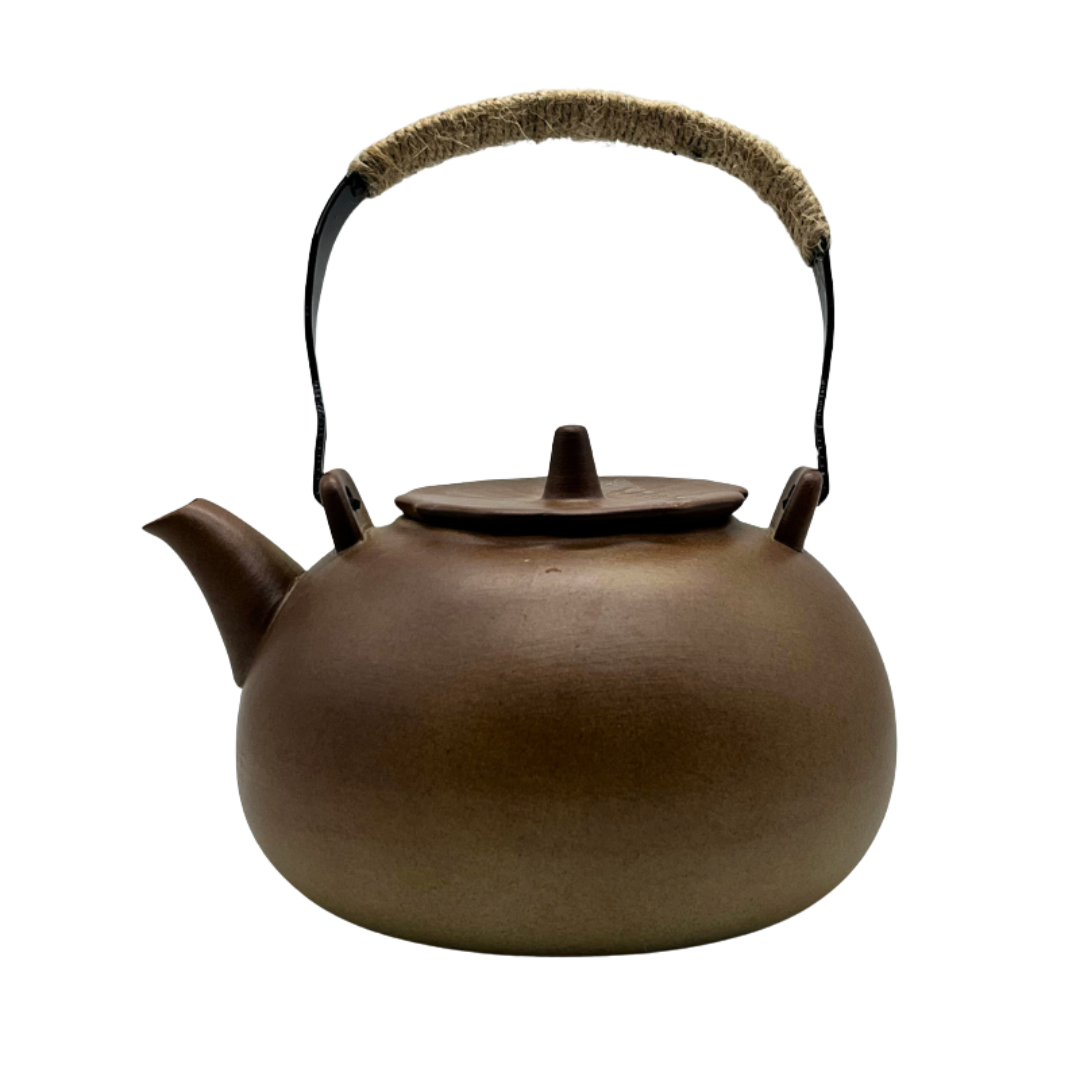 Brew tea the traditional way with the Medium Clay Teapot with Handle, a beautifully balanced piece that combines functionality with rustic elegance. Crafted from natural clay, this teapot enhances the depth and character of your tea with each use, gradually developing a seasoned patina that reflects your brewing journey. The sturdy rope-wrapped handle offers both comfort and heat protection, while the wide base ensures even heat retention for a perfectly steeped cup every time. Ideal for loose-leaf and herbal infusions, this teapot adds warmth and artistry to any tea session.