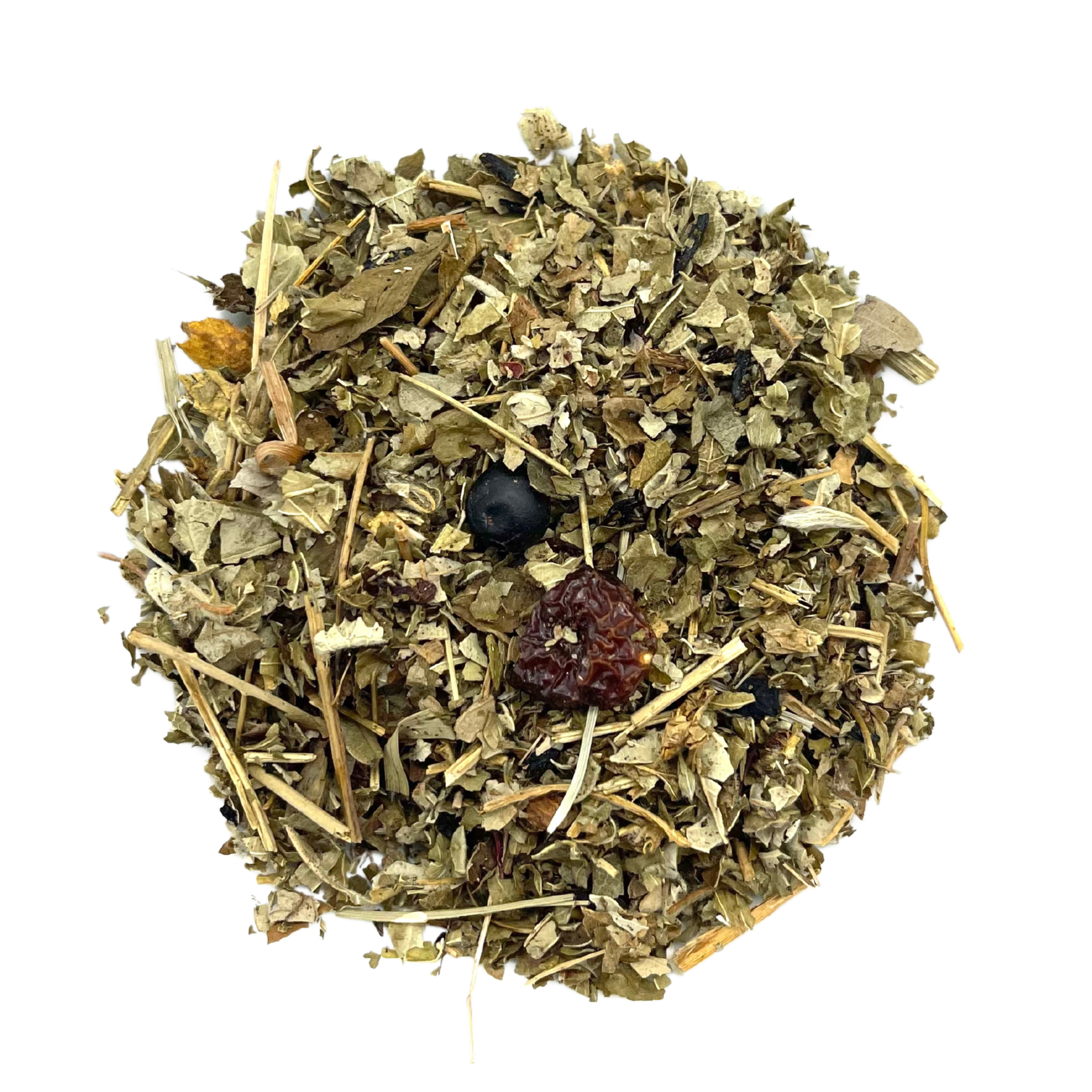 Ingredients: Strawberry leaves, Blackberry leaves, Hibiscus flower, Rose hips, Juniper berry, Acerola powder, Natural fruit flavor