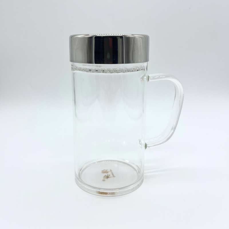 Enjoy loose leaf tea the easy way with the Glass Strainer Mug. This elegant mug combines simplicity, function, and modern design—featuring a built-in stainless steel strainer and a clear, heat-resistant glass body that lets you watch your tea bloom as it steeps. The polished silver lid helps retain heat while keeping your brew fresh and aromatic. Perfect for home, office, or on-the-go tea lovers, it’s the ideal all-in-one solution for single-serve brewing without the mess.